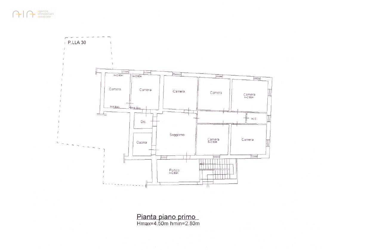La casa è dislocata su due livelli per complessivi mq 341 circa, aderente su di un lato ad altro fabbricato, composto da: piano terra di mq 169 circa, oltre ad un portico di mq 8 circa; piano primo di mq 172 circa, oltre ad un portico di mq 8 circa. Annessa alla Vendita, ma staccata dal fabbricato principale, c'è una rimessa oltre una tettoia per complessivi mq 107.