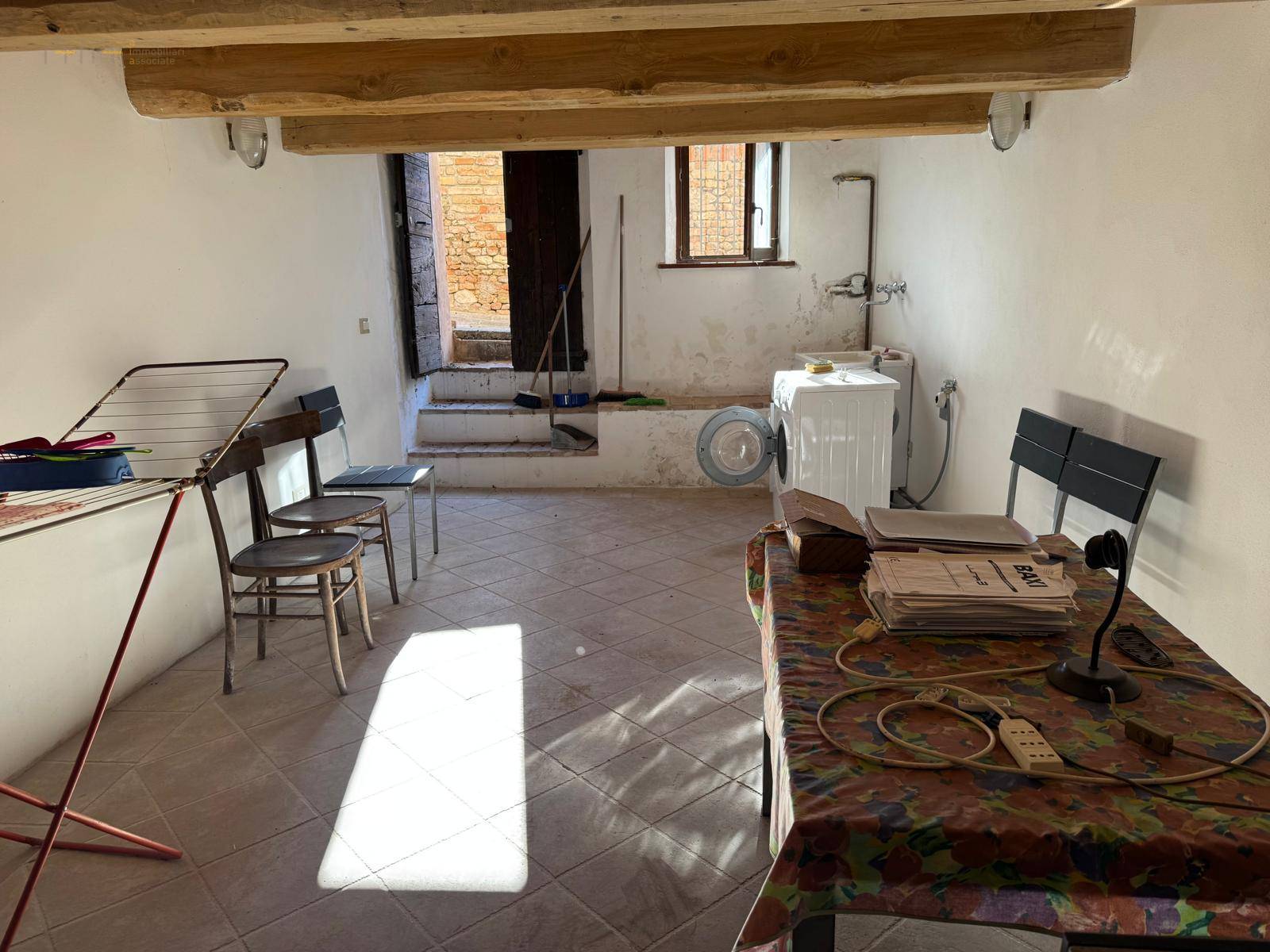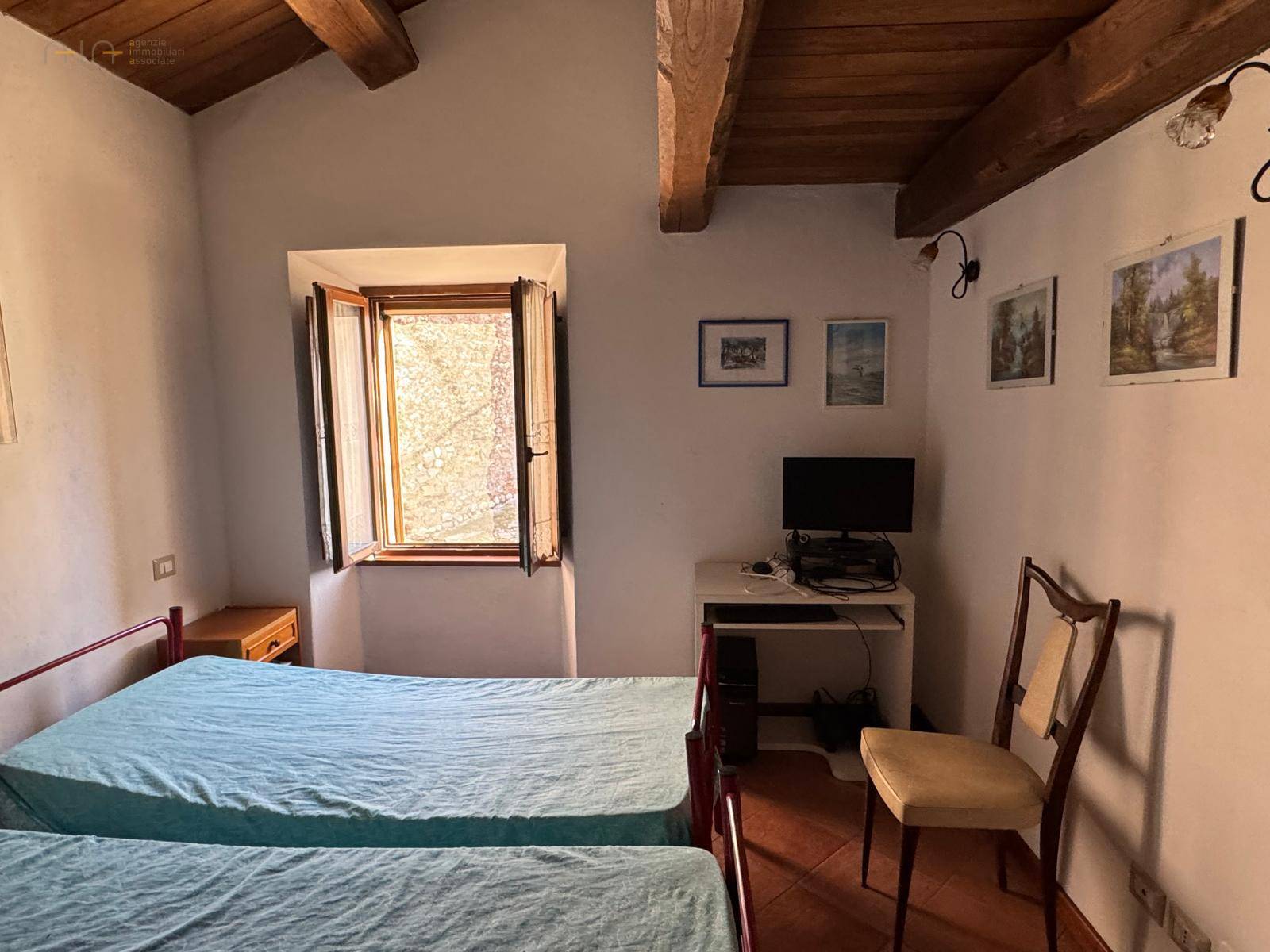 L'unità immobiliare è composta da: soggiorno con angolo cottura ed un bagno al piano terra, al piano superiore due camere ed un bagno; al piano sottostrada troviamo un fondaco/cantina con una piccola grotta. Grazie agli ingressi indipendenti, al piano terra ed al primo si potrebbero realizzare due unità abitative, un monolocale al piano inferiore ed un appartamentino con una camera al piano superiore.