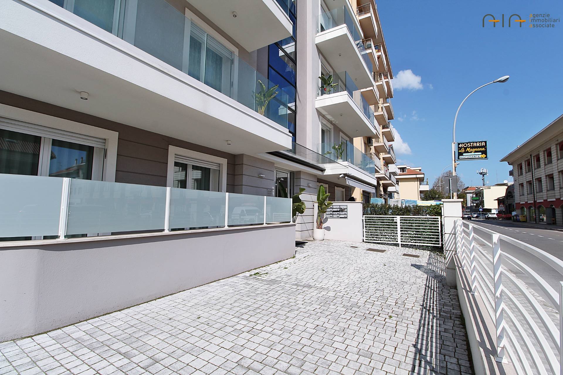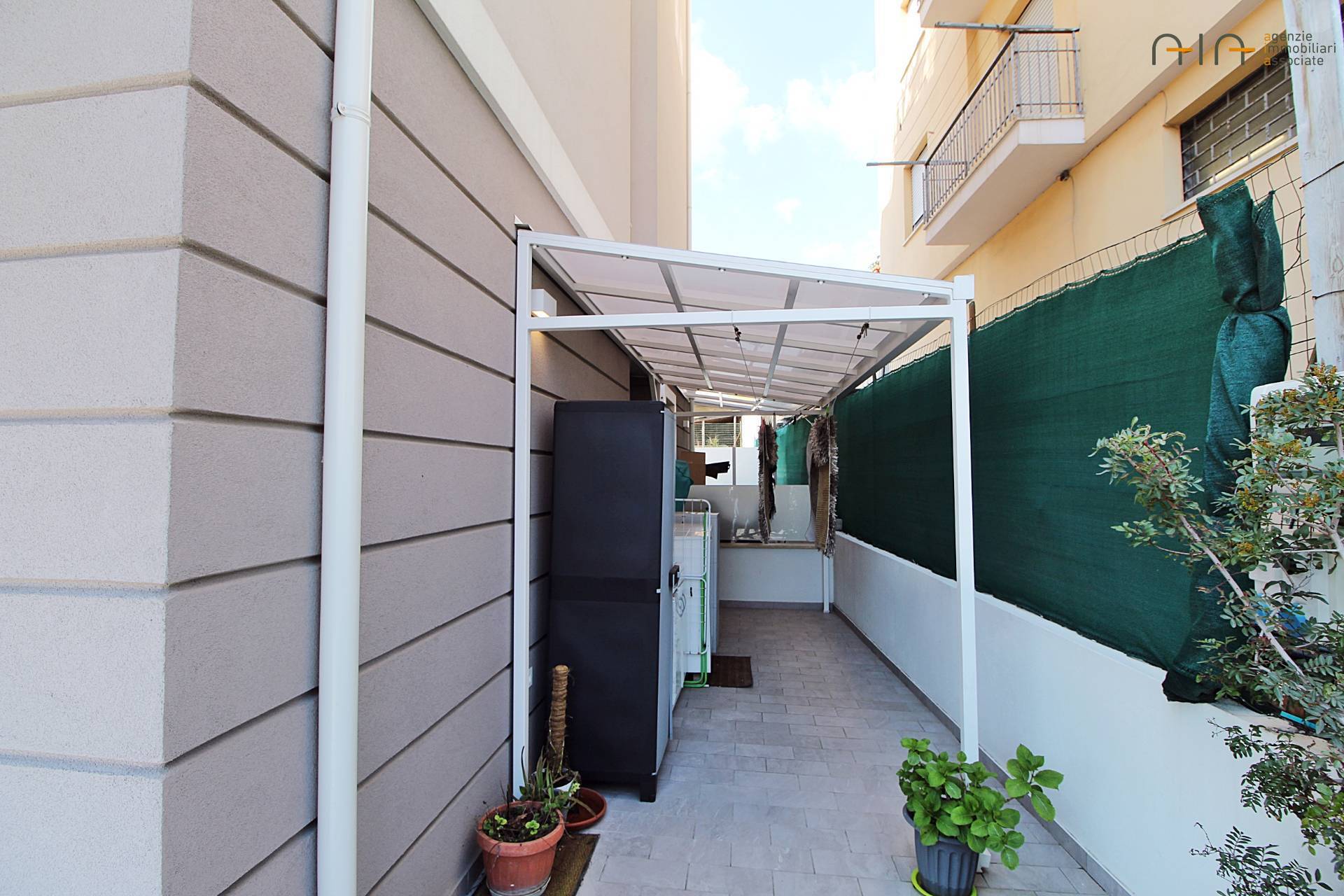 Appartamento bilocale completo di giardino privato e posti auto avente ingresso indipendente e condominiale, posto al piano terra di un fabbricato di recente costruzione anno 2023 in (classe energetica A4), composto da ingresso su soggiorno con angolo cottura, camera da letto matrimoniale, antibagno e bagno e corte esterna esclusiva pavimentata e recintata di mq 50 circa con possibilità di parcheggiare due auto comodamente di mq 29 circa. L'Appartamento di recentissima costruzione, si presenta con rifiniture di ottima qualità, pavimentazione in gres su tutta la superficie, infissi in alluminio con doppi vetri, portone blindato, impianto di riscaldamento a pavimento, raffreddamento (idrosplit), pannelli fotovoltaici, cappotto termico, infissi con ricambio d'aria, serrandine elettriche, tenda da sole, zanzariere e videocitofono. Ottima posizione a breve distanza dai servizi e dal centro città.