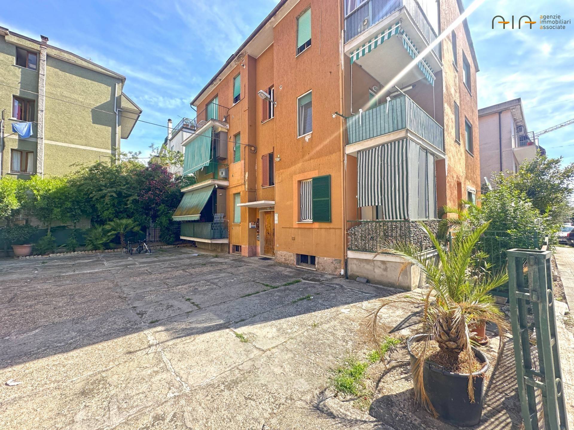 In zona centrale e servita, a soli 600 mt dal mare e dal lungomare, Appartamento di mq 77 circa al piano secondo senza ascensore composto da ingresso su ampio e luminoso soggiorno con camino, cucina separata abitabile, due balconi, due camere da letto, bagno finestrato e comoda cantina al piano seminterrato. Palazzina ex case popolari con soli 6 unità immobiliari con spazio comune per rimessa biciclette e moto