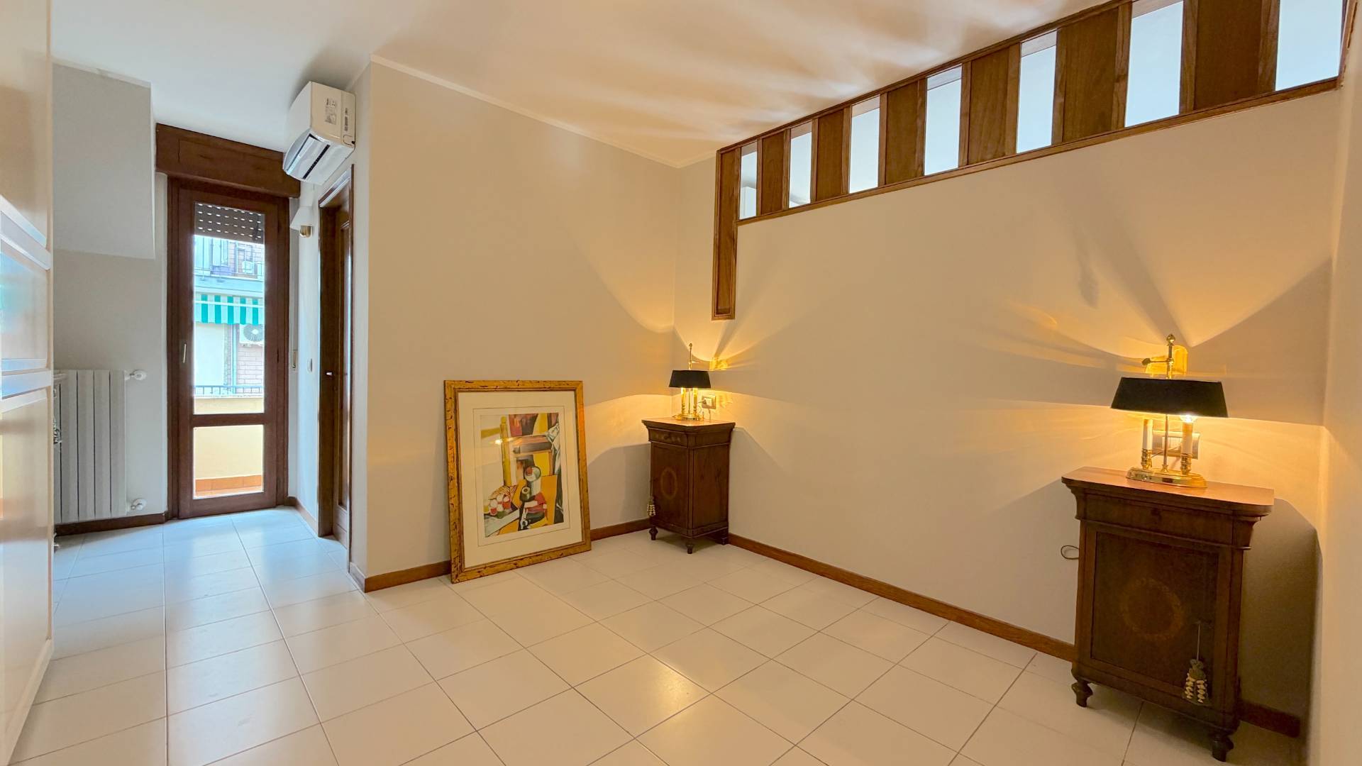 L'immobile si presenta in condizioni impeccabili: pavimentazione in gres, impianti a norma, climatizzazione presente in tutti gli ambienti, porte interne di ottima qualità e bagno aggiornato.