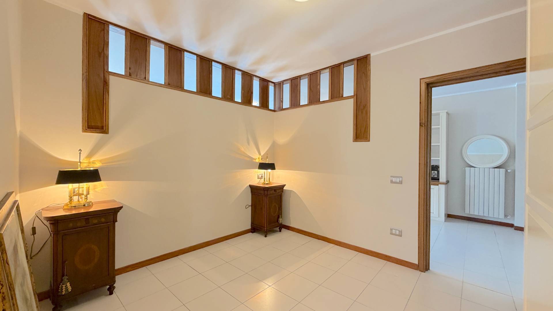 La ristrutturazione, eseguita alcuni anni fa, richiama uno stile classico, caldo e senza tempo.