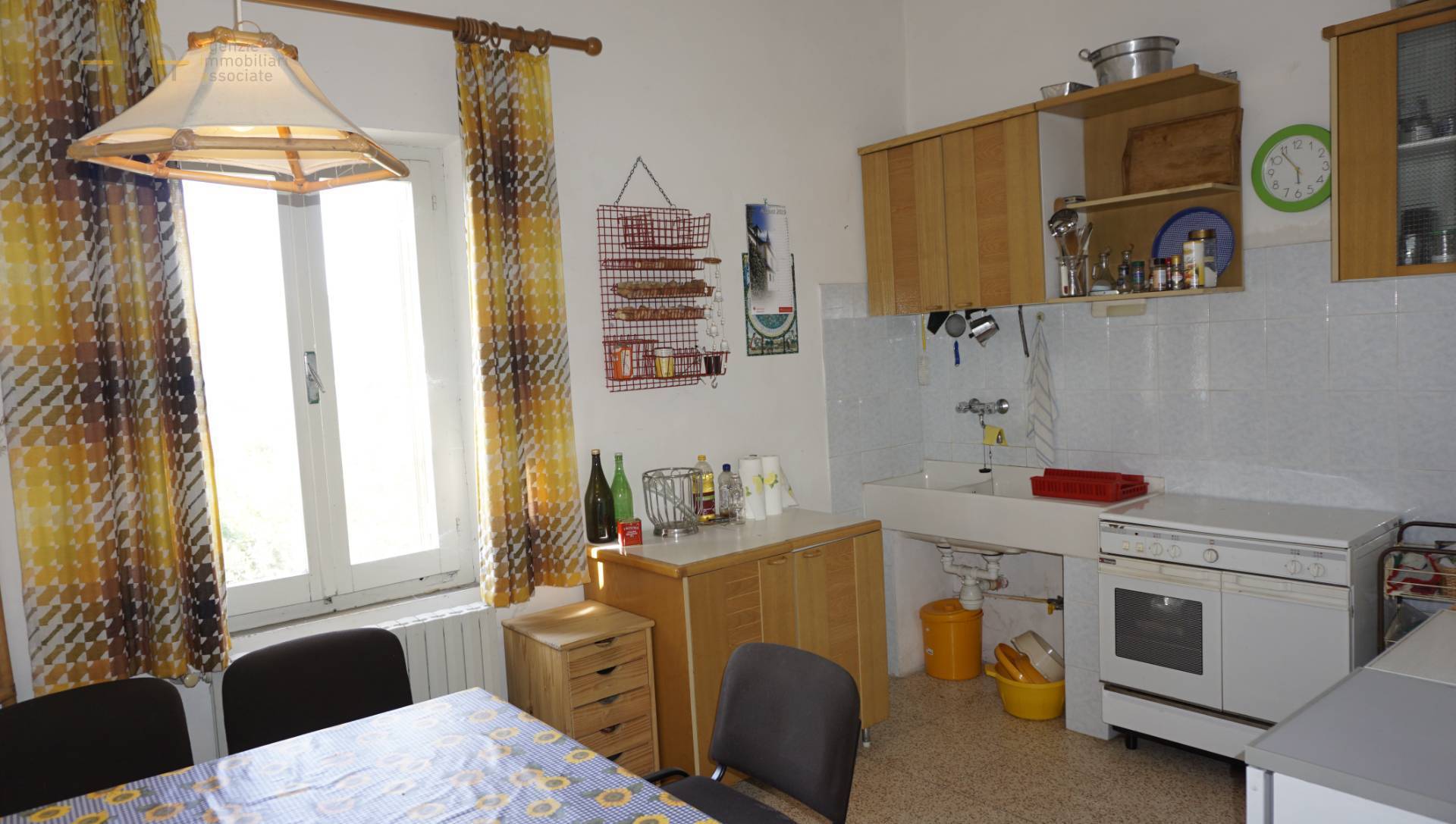 Il casolare è dislocato su due livelli per complessivi mq 267, composto da: piano terra di mq 152 circa, costituito da 7 locali destinati ripostiglio/fondaco; piano primo di mq 115 circa, costituito da un appartamento, formato da soggiorno con camino, cucina abitabile, quattro camere da letto, due bagni, ampio terrazzo di mq 36 circa. La struttura risulta in buono stato, il piano primo, oggetto di parziali ristrutturazioni negli anni '80, è rifinito con i materiali dell'epoca ed è dotato di riscaldamento - necessario un ammodernamento. Il piano terra, invece, è internamente allo stato grezzo e necessità di una ristrutturazione completa. Al piano terra, potrebbe essere possibile effettuare il cambio di destinazione d'uso in abitativo.